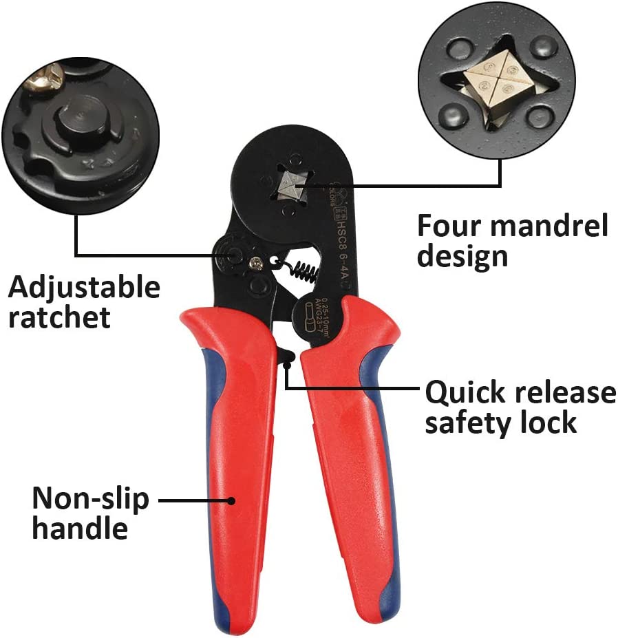 این محصول شامل یک عدد ابزار پرس نیمه اتوماتیک، با عملکرد چرخ دنده ای (ratchet mechanism) جهت حرکت اهرم ها تنها در یک مسیر هنگام بستن آنها به منظور پرس ترمینال، و قابلیت خلاصی کامل اهرم ها جهت باز شدن ابزار و قالب ها پس از انجام پرس (disengage option) می باشد. . طراحی قالب این نوع ابزار ها، از نوع قالب های بسته می باشد، بدین معنی که دارای قالب یک تکه بوده، و ترمینال مورد نظر در مرکز قالب قرار گرفته و با پرس دسته قالب فشرده شده و پرس انجام می گیرد. این قالب ها، قابلیت تعویض ندارند.