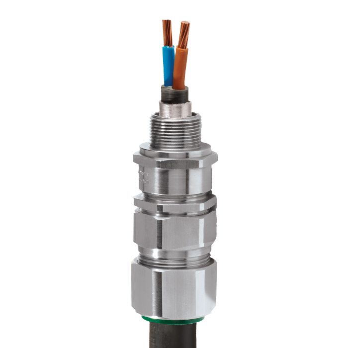 گلند آرموردار ضد انفجار در سایز متریک M20 الی M63 تولید شده متعلقات جانبی از قبیل شرود و ارت تگ و لاک نات موجود و قابل ارایه است.